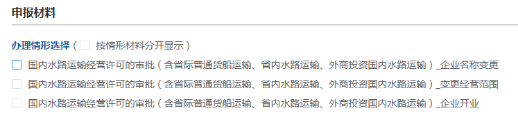 注◈★★★◈:“企业名称变更”◈★★★◈、“变更经营范围”办理情形申请材料拉斯维加斯游戏官方网站拉斯维加斯游戏官方网站◈★★★◈,详见福建省网上办事大厅“省际普通货船运输◈★★★◈、省内水路运输经营许可(设区的市级权限)(新办)”-办理情形选择◈★★★◈: